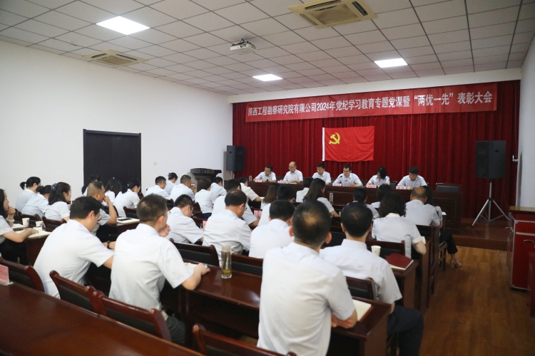 為扎實推進(jìn)黨紀(jì)學(xué)習(xí)教育見行見效,激勵廣大黨員干部學(xué)優(yōu)爭先、砥礪前行,6月25日上午,陜西工勘院召開黨委書記講黨紀(jì)學(xué)習(xí)教育專題黨課暨“兩優(yōu)一先”表彰大會。公司黨委書記、執(zhí)行董事、總經(jīng)理黃立新講授黨紀(jì)學(xué)習(xí)教育專題黨課,黨委副書記、工會主席蒙興厚主持會議并宣讀表彰決定。